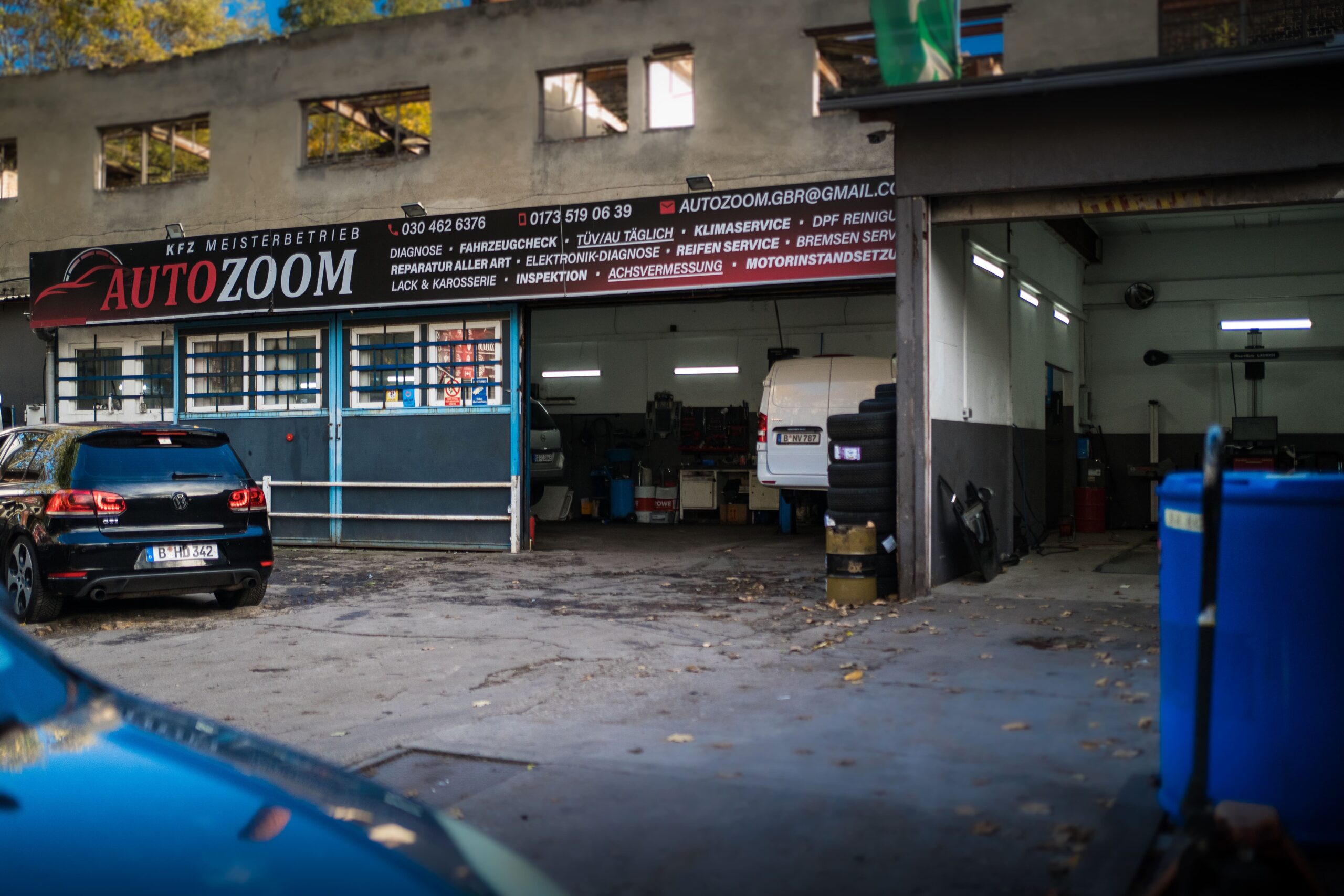 Herzlich Willkommen bei Kfz-Meisterwerkstatt Autozoom, Ihrer zuverlässigen Kfz-Werkstatt in Berlin Wedding/Mitte. Wir bieten einen kompetenten Rundumservice für typenverschiedene Fahrzeuge an. Das Autozoom-Team ist ein vertrauensvoller und zuverlässiger Ansprechpartner, wenn es um Wartung, Inspektion oder Reparatur Ihres Autos geht. Hiermit möchten wir Ihnen Einblicke in unsere Leistungen und unser Team geben. Mit unseren fünf Hebebühnen (inkl. Achsvermessungsbühne, und Scherenbühne für leichte Nutzfahrzeuge mit bis zu 5t) bieten wir Leistungen rund ums Fahrzeug an.