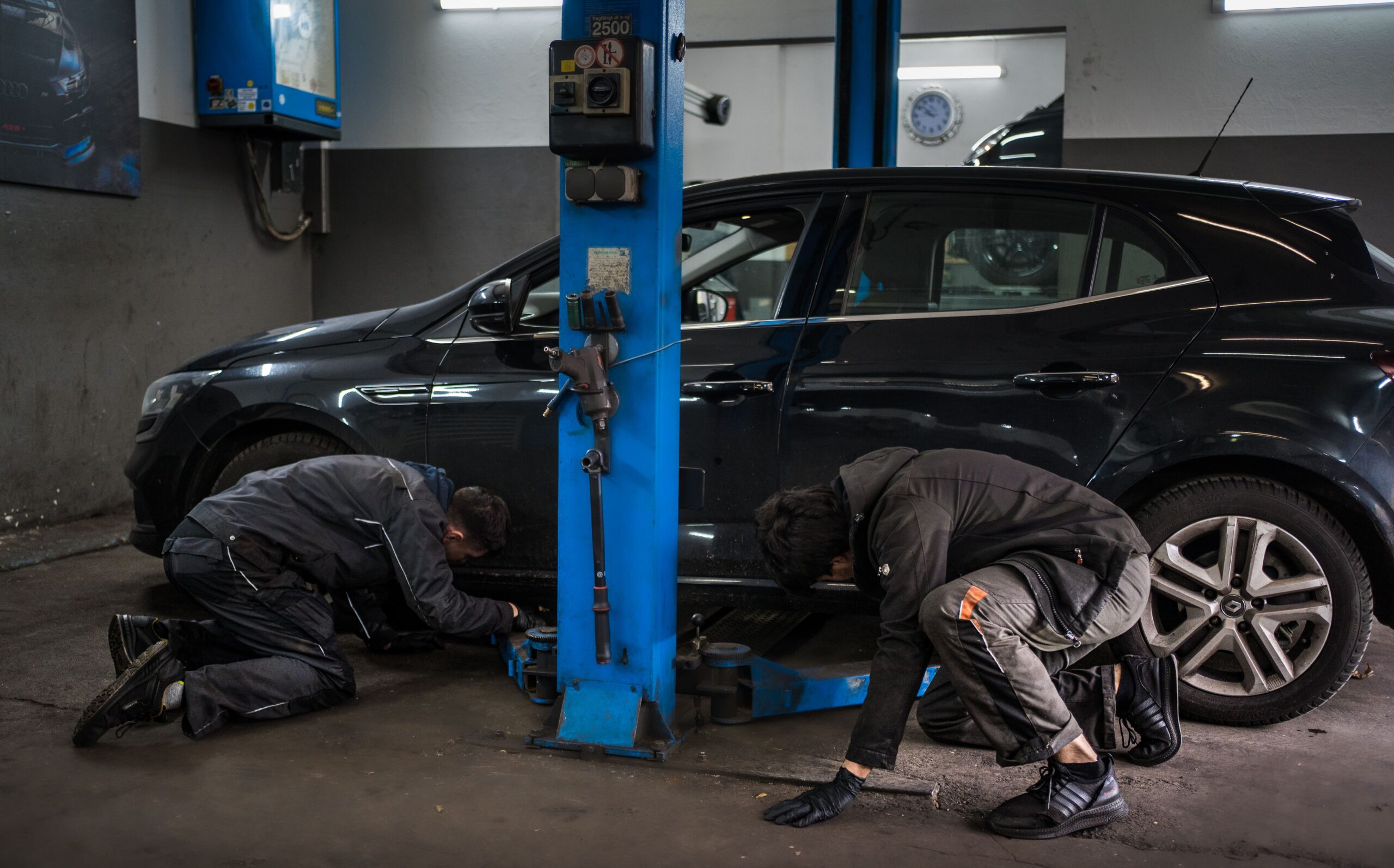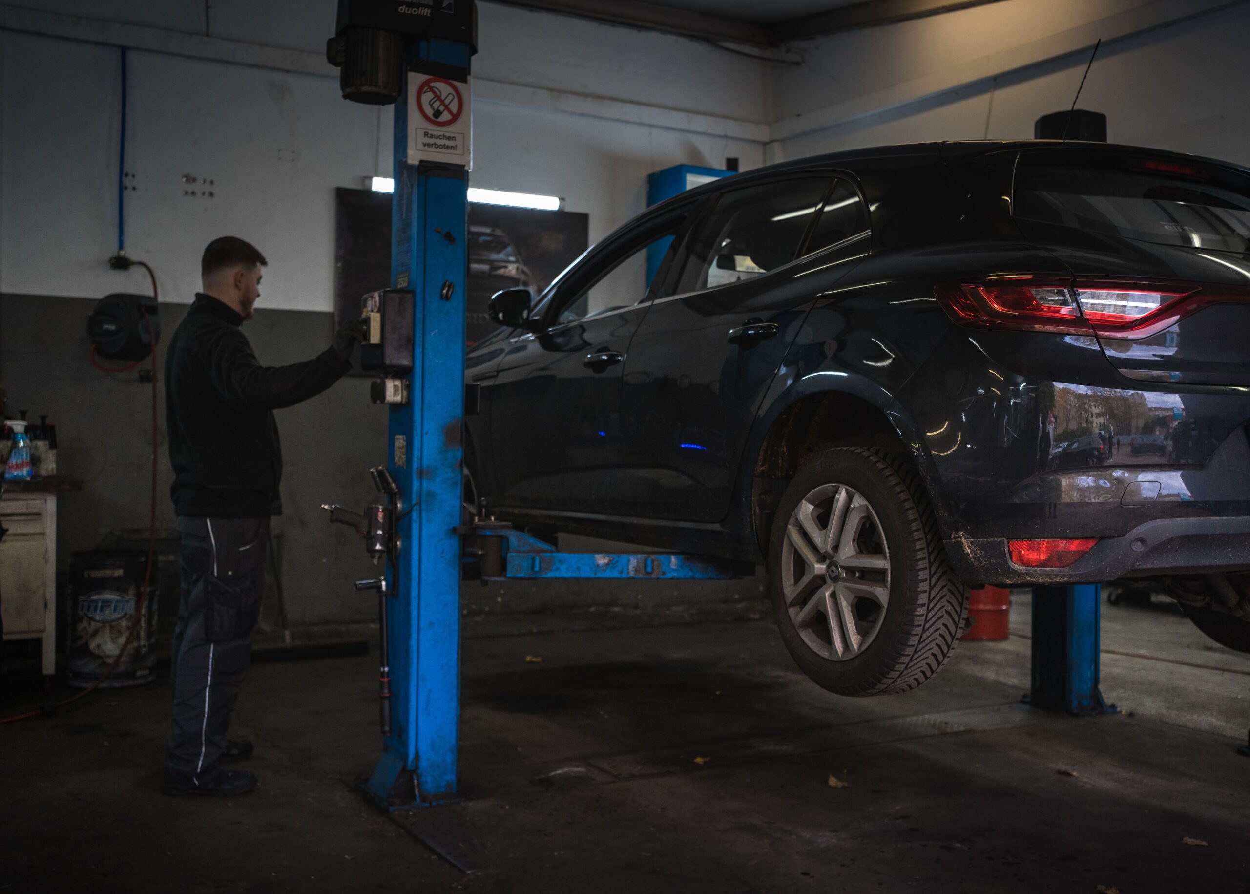 Mit unseren fünf Hebebühnen (inkl. Achsvermessungsbühne, und Scherenbühne für leichte Nutzfahrzeuge mit bis zu 5t) bieten wir Leistungen rund ums Fahrzeug an.